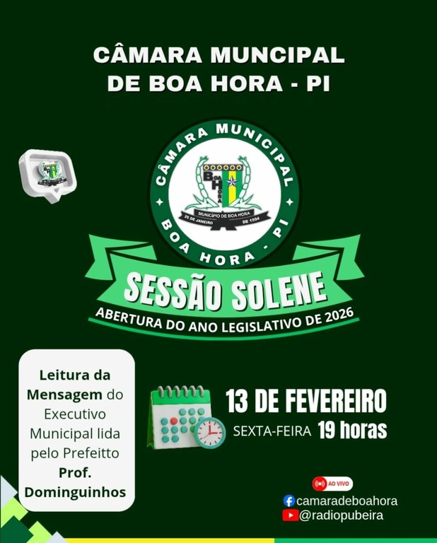 Câmara Municipal de Boa Hora realiza Sessão Solene de Abertura do Ano Legislativo de 2026